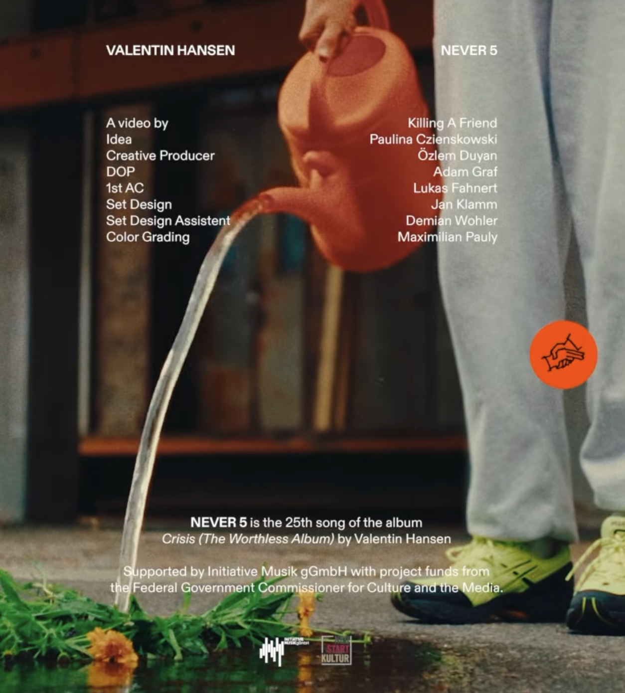 The image presents a minimalist and sophisticated visual for a music release, utilizing muted tones and a strong focus on texture and form. The composition is clean, drawing the viewer's eye toward the central element—the hand and the colored liquid—creating an intimate yet professional atmosphere.