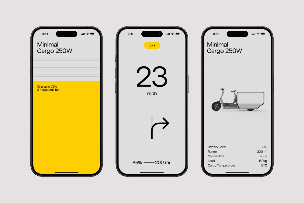 This interface utilizes a highly functional and minimalist design language, emphasizing clean lines, high contrast, and precise data presentation. The visual hierarchy is clear, guiding the user efficiently through technical metrics related to cargo operations and vehicle performance.