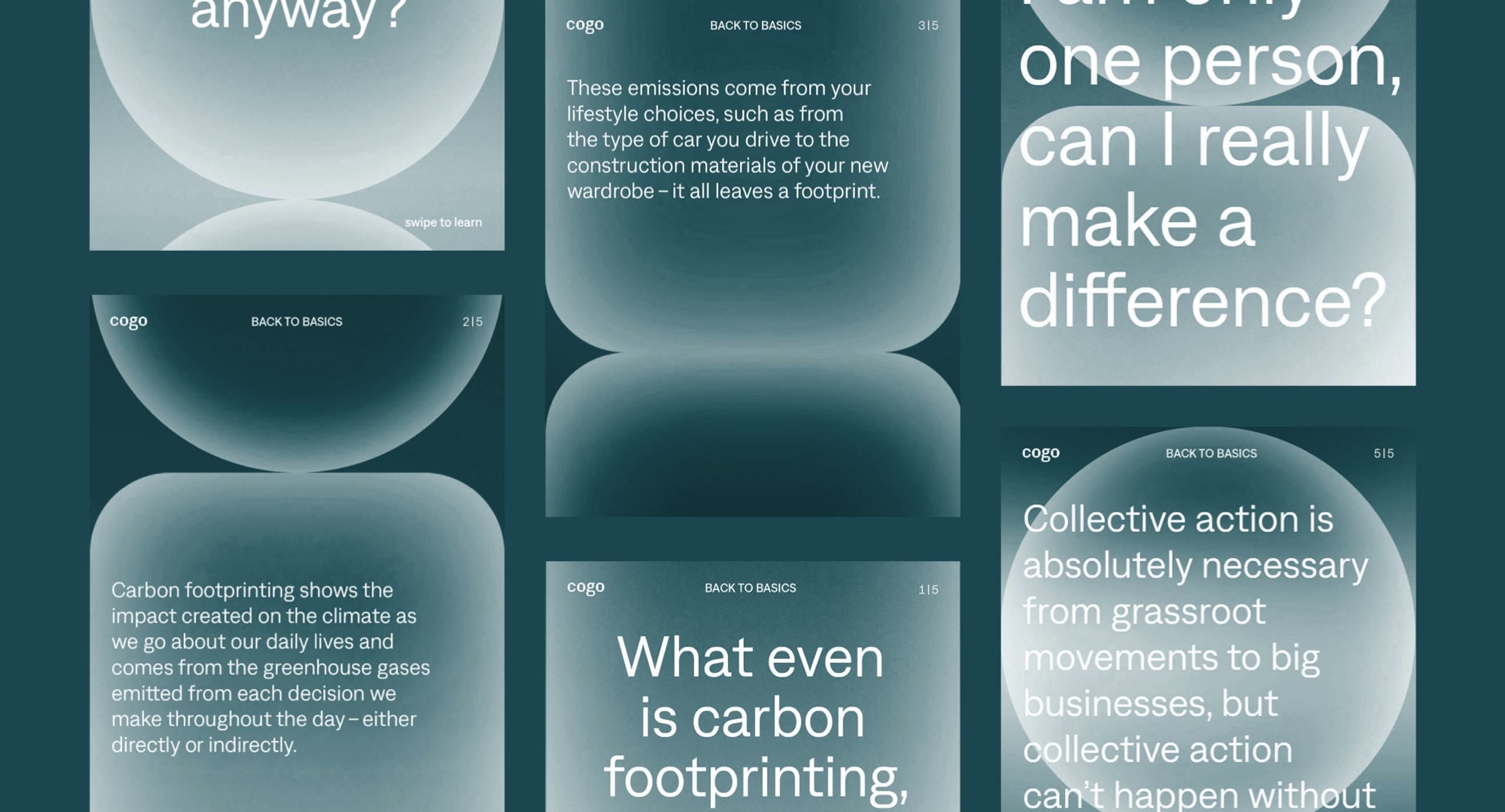 The image is a collage of various infographic-style tiles, likely from a mobile application or website, presenting data related to environmental or sustainability topics. The design is clean, modern, and utilizes strong visual hierarchy through large percentages and clear iconography.