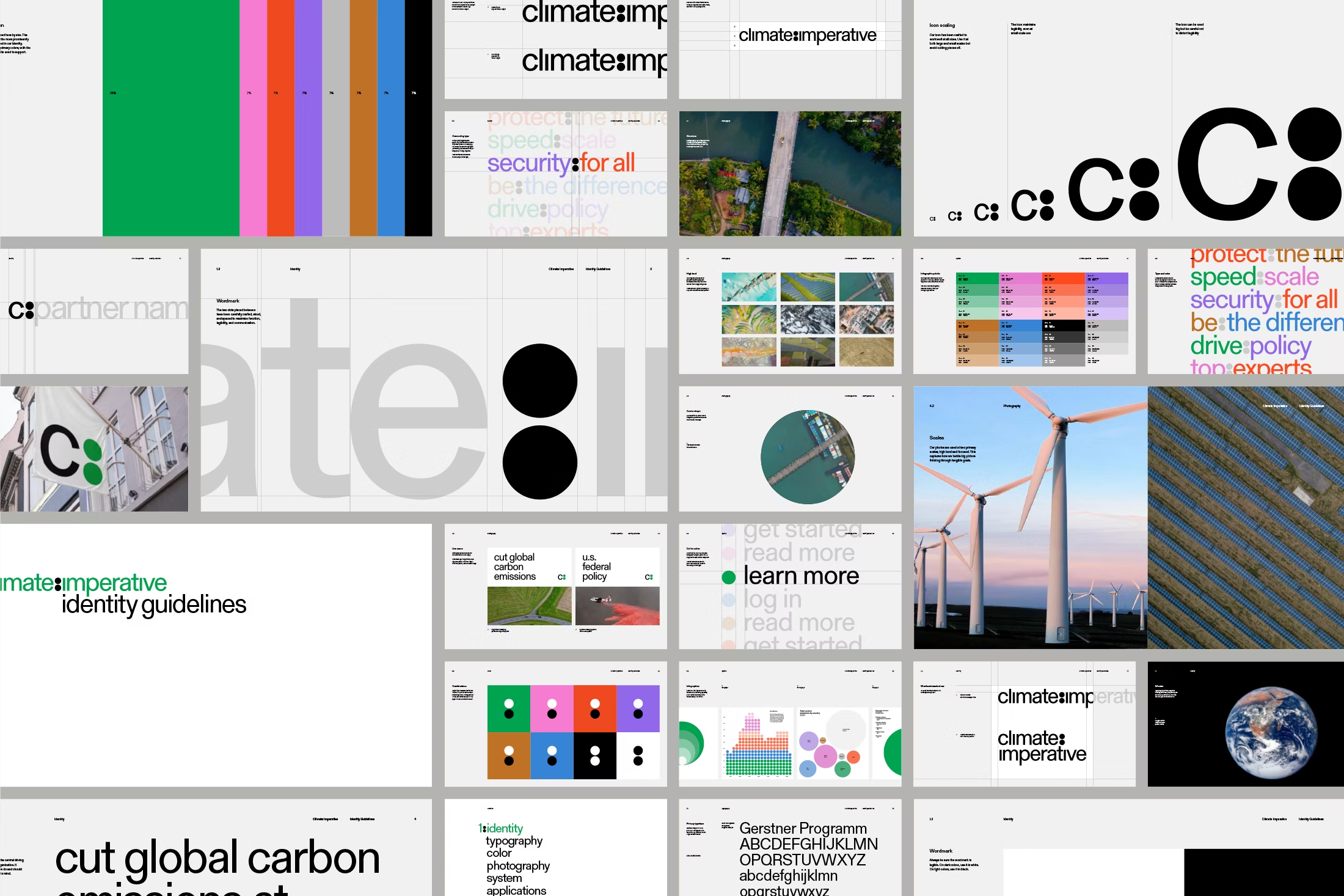 The design utilizes a clean, modular grid structure to present complex data and policy information in an accessible manner. The visual language is corporate, relying heavily on subtle color gradients and clear typography to convey serious environmental or security themes. The overall feel is professional, analytical, and urgent.