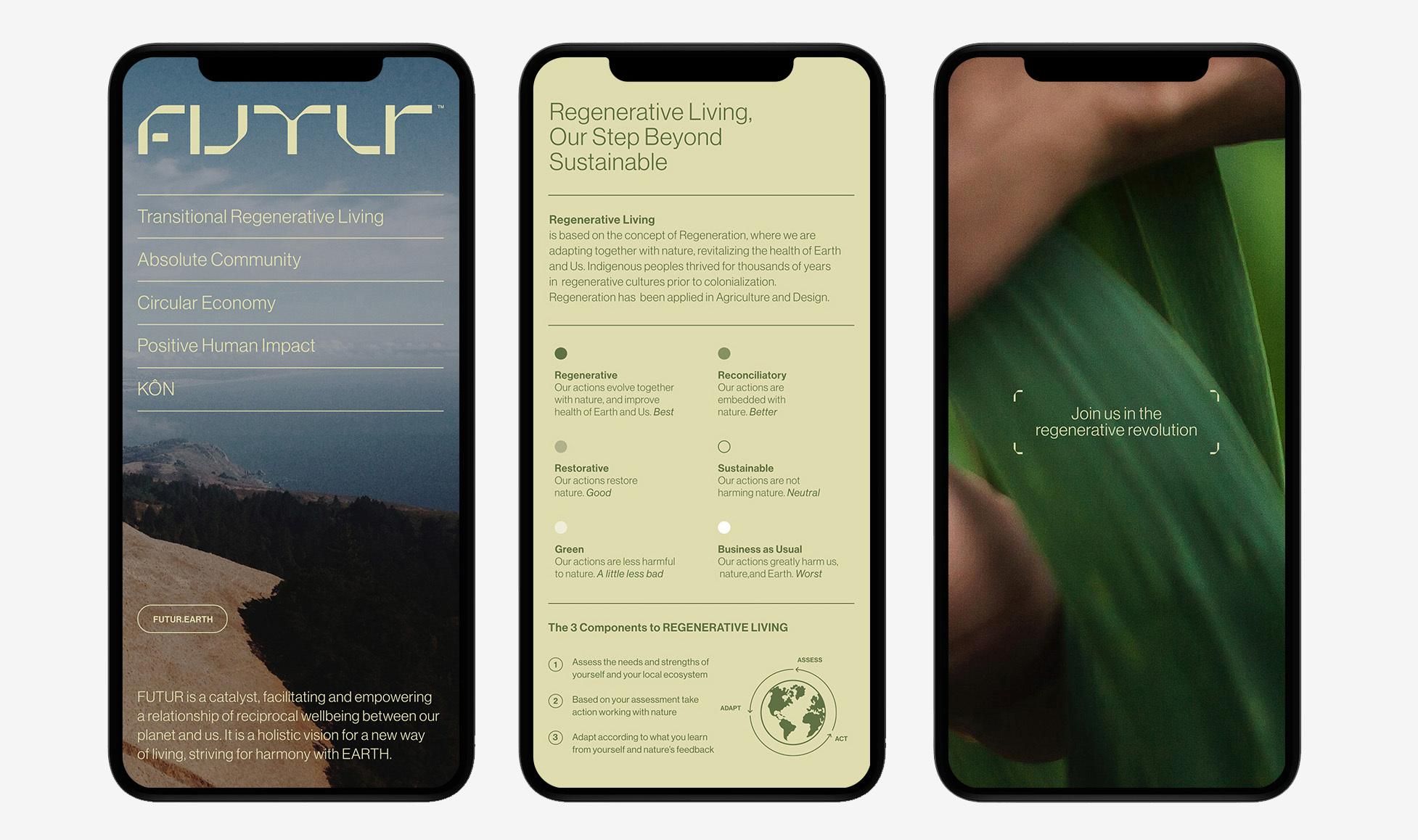 This visual set employs a clean, modern aesthetic grounded in natural earth tones to communicate complex environmental and lifestyle concepts. The design uses high contrast between dark backgrounds and light text to emphasize key ideas, resulting in a sophisticated yet approachable visual language.