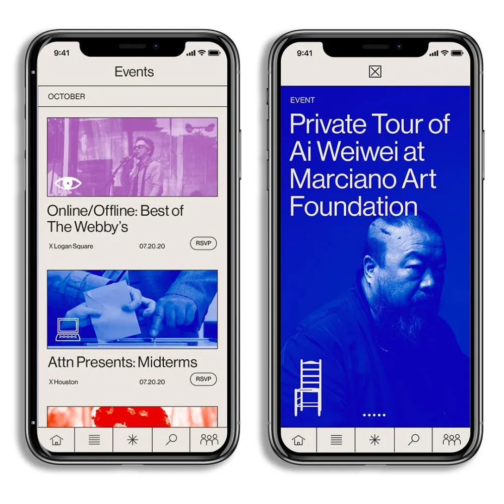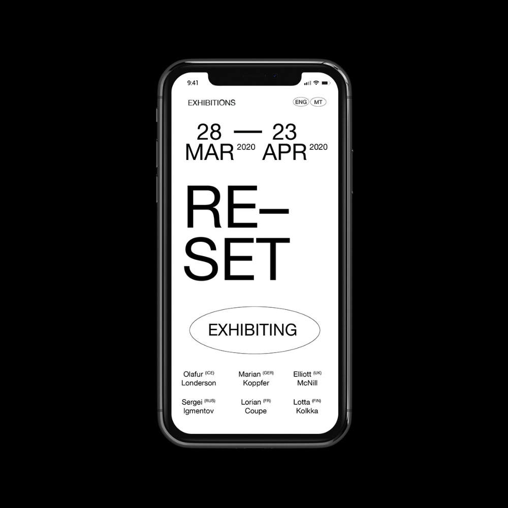 The image displays a clean, minimalist mobile interface design, likely for an event or exhibition schedule. It utilizes high contrast and ample negative space to present key information clearly and professionally.