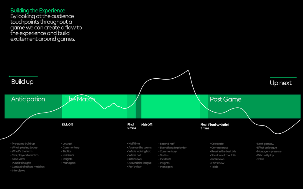 The design uses a clean, modern, and linear visual metaphor to represent a process or experience flow. It employs a horizontal timeline graphic with distinct color coding to segment different phases of an event, creating a sense of progression and structure.