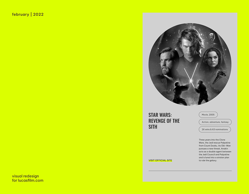 This design utilizes a high-contrast, minimalist aesthetic, pairing a vibrant lime green background with deep black tones to create visual impact. The layout is clean and balanced, effectively using negative space to highlight the cinematic imagery and key textual information.