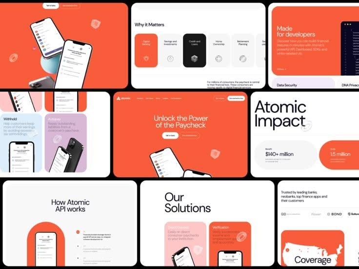 This collection showcases a modern, clean interface design utilizing a strong color accent against a neutral background to convey professionalism and clarity. The visual language is highly structured, relying on card layouts and ample negative space to ensure key information is easily digestible. The overall feel is trustworthy, innovative, and highly functional.