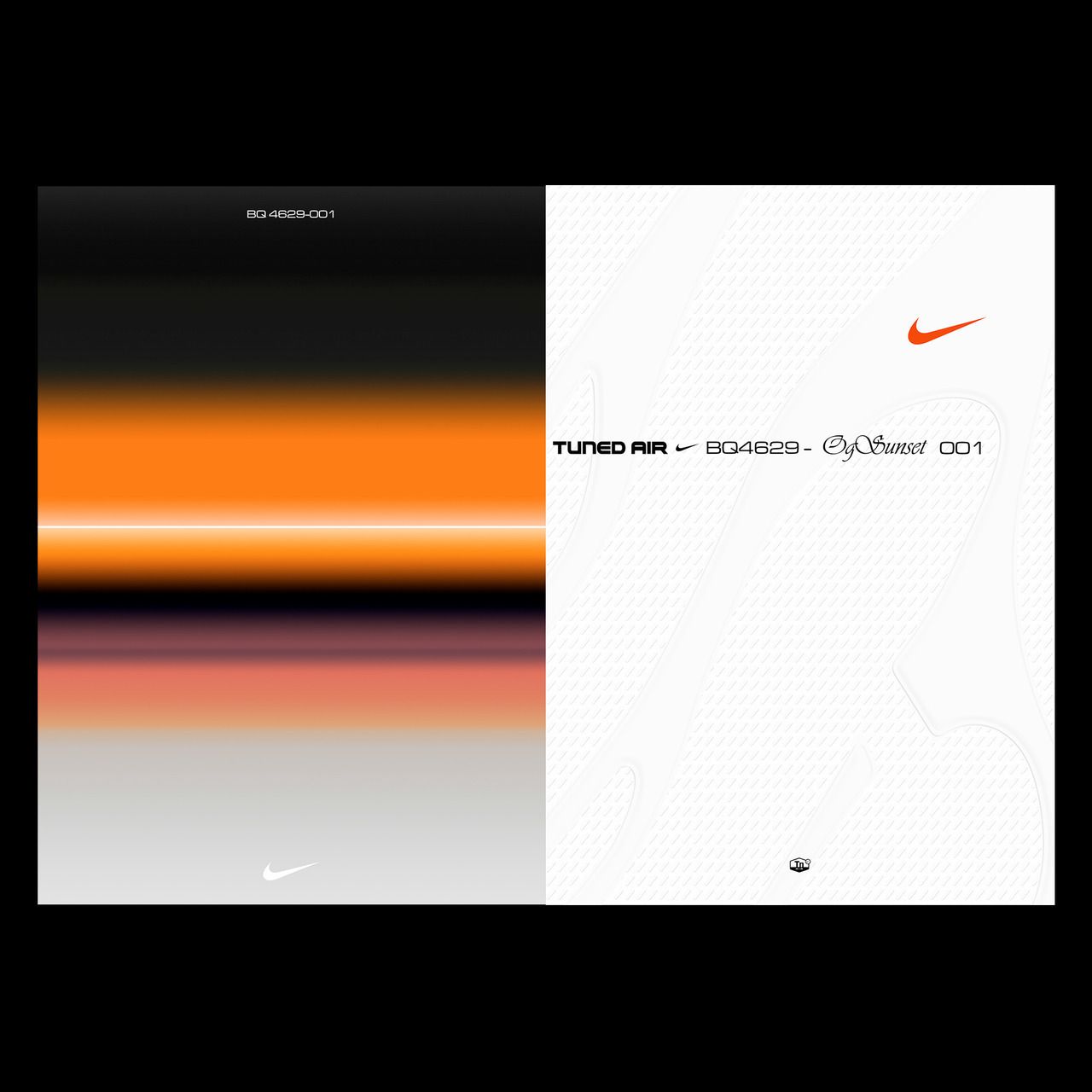 This design utilizes a strong split composition to showcase product details, pairing an intense, warm gradient against a stark, clean white background. The visual language is minimalist and dynamic, effectively drawing the viewer's eye across the color transition while maintaining a premium, athletic feel.