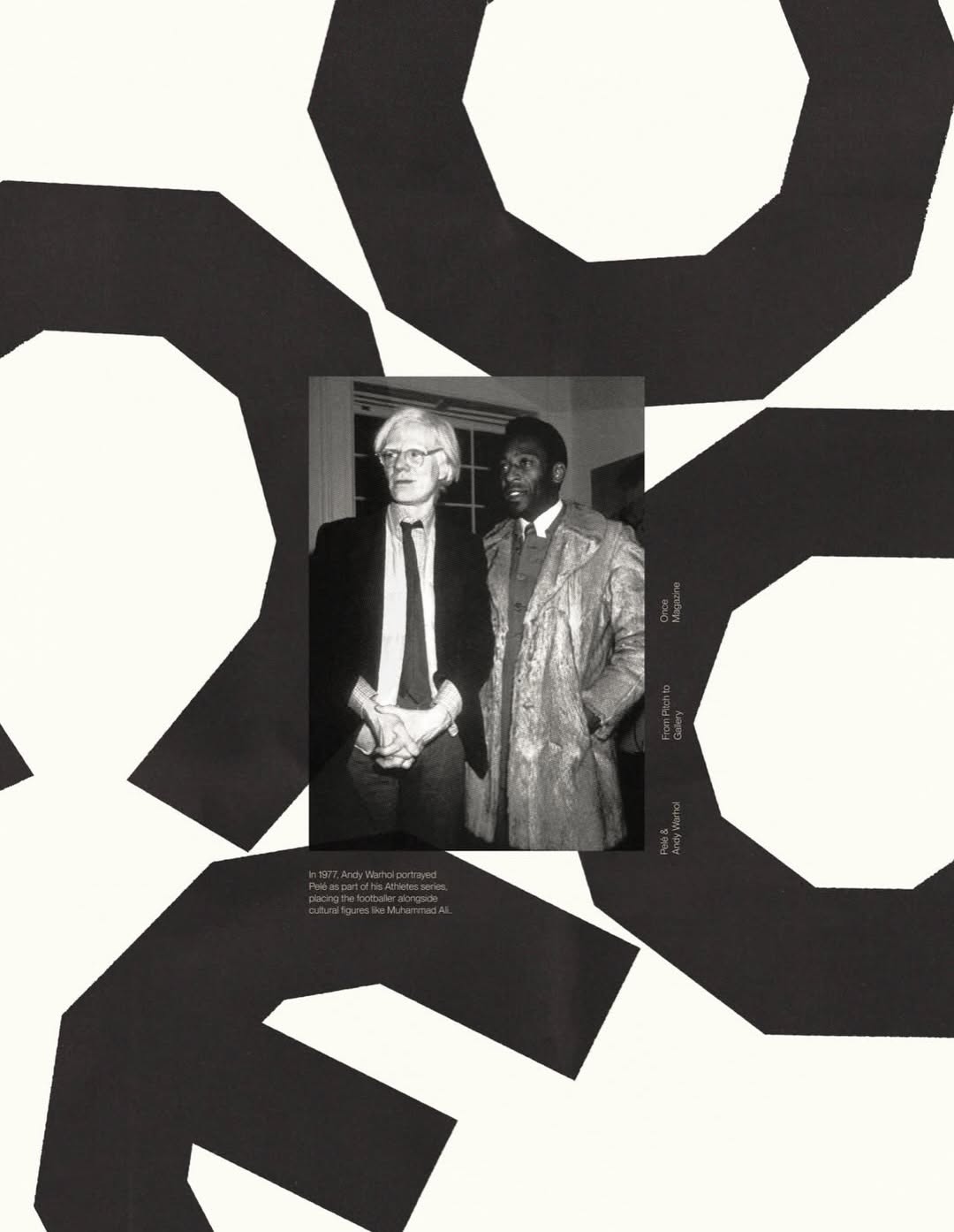 This is a high-contrast photographic composition overlaid with large, irregular geometric shapes, creating a modern and abstract visual framework. The design balances the realism of the portrait with stark graphical elements, resulting in a serious and conceptual aesthetic.