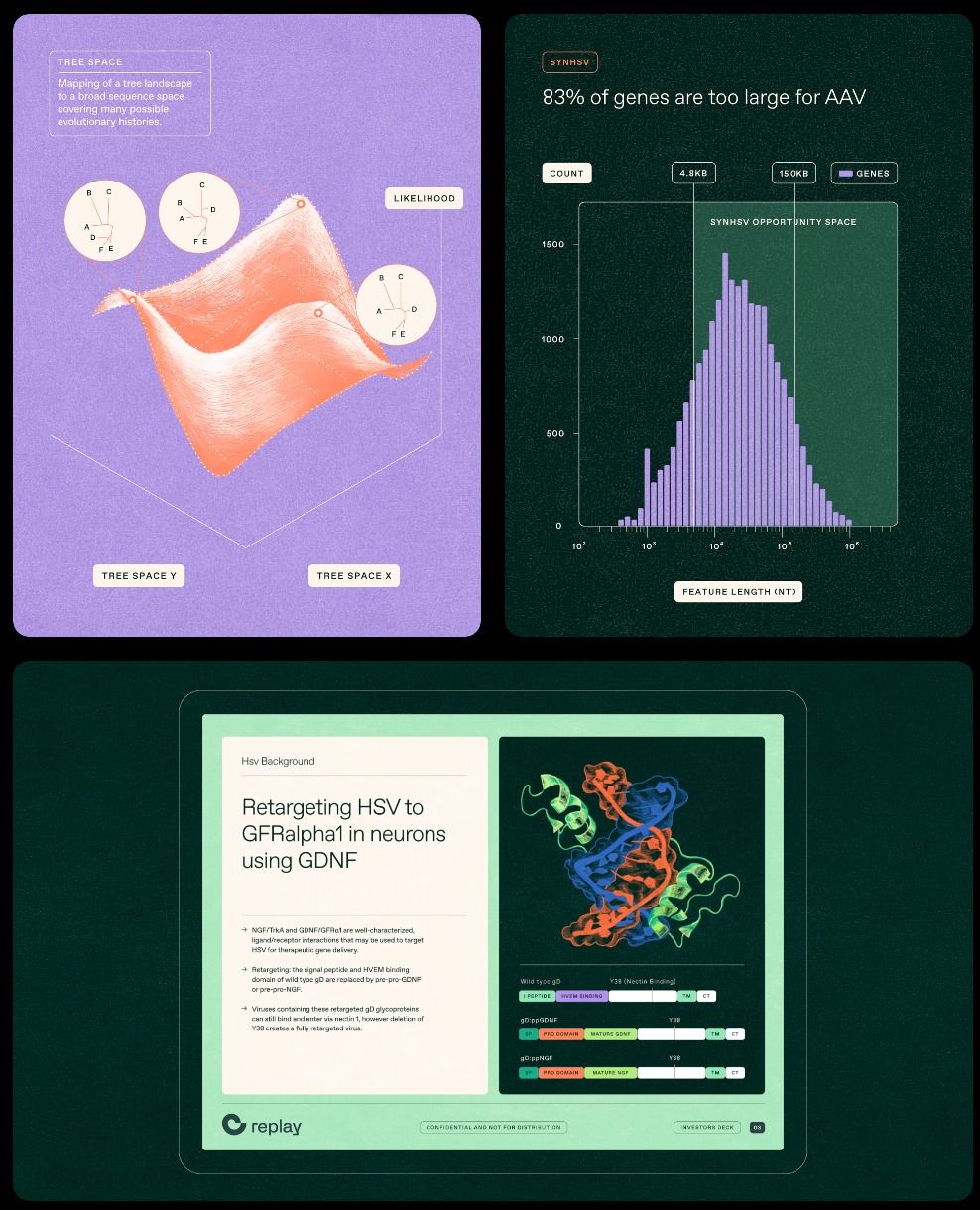 The image presents a collection of distinct visual elements, mixing abstract scientific diagrams with clean, modern UI mockups. The design balances complex data visualization (like the probability distribution) with structured software interfaces, suggesting a focus on bioinformatics or advanced data science.