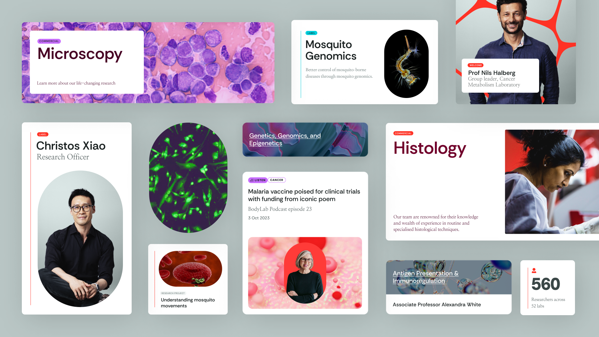 This image presents a highly professional and modern visual collage designed to showcase scientific research capabilities. The design utilizes a clean, modular grid structure combined with vivid biological imagery and professional photography to convey expertise and innovation.