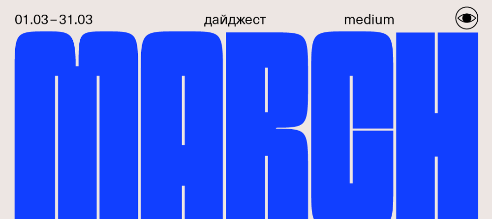 The image features large, bold, sans-serif typography spelling out 'MARCH' in a vibrant blue against a light background. The design is clean, modern, and highly legible, utilizing strong contrast to create a striking visual statement.