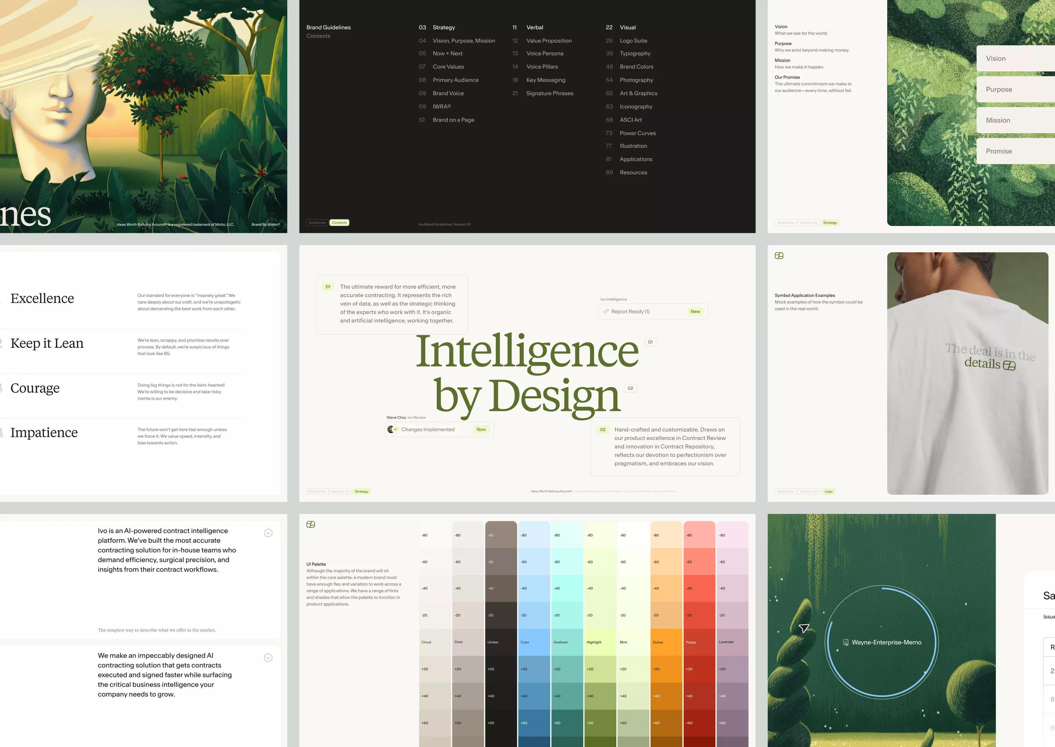 This design utilizes a vibrant yet sophisticated color palette and clean geometric shapes to convey a sense of innovation and connectivity. The layout is highly structured, employing vertical cards against a natural background to organize complex information clearly. The overall visual language is modern and professional, suggesting a focus on scientific or technological solutions.
