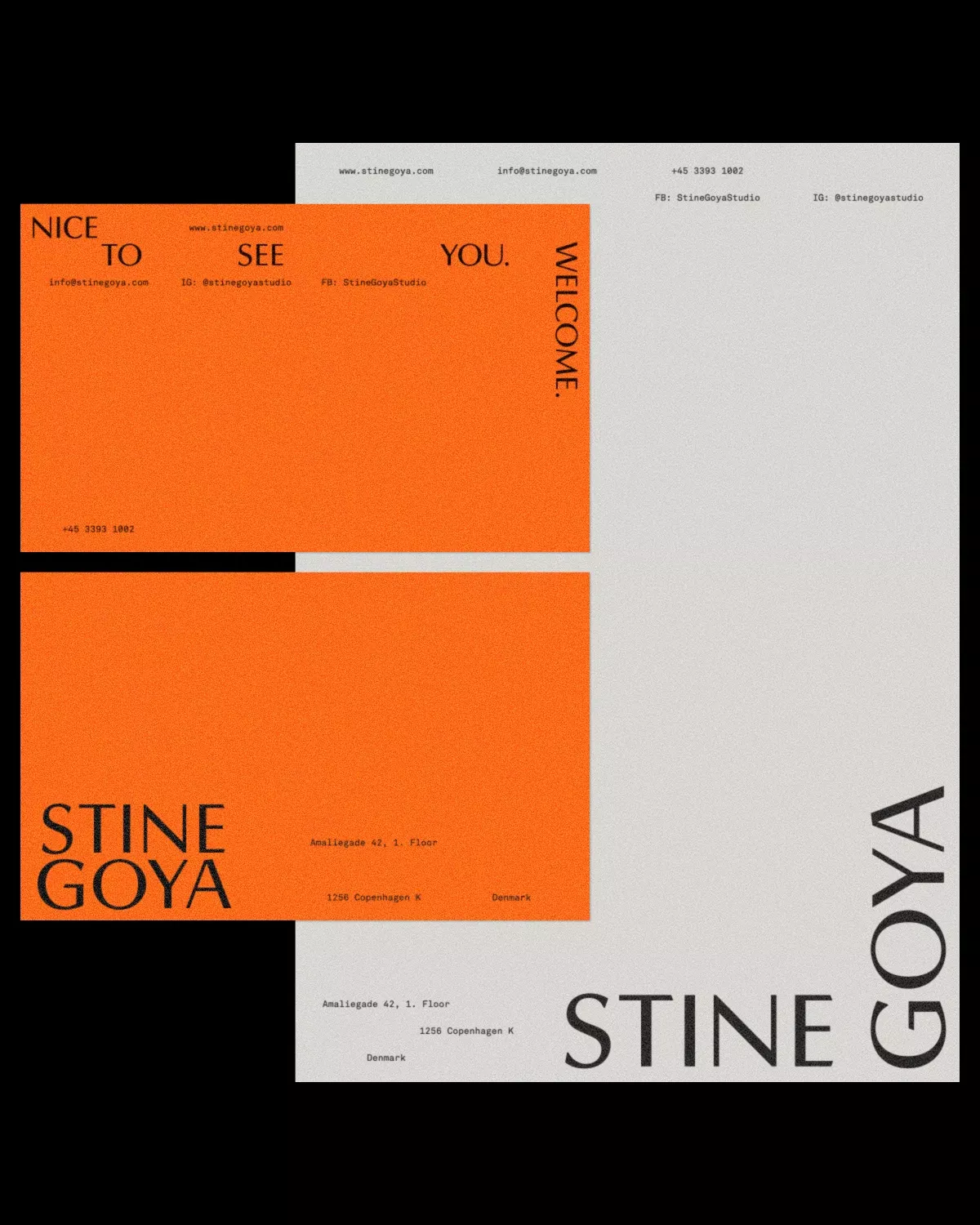 This image features a minimalist and sophisticated welcome card design, utilizing clean lines and negative space to convey a sense of modern luxury. The composition is sharp and balanced, relying on the contrast between muted neutrals and a vibrant accent color.