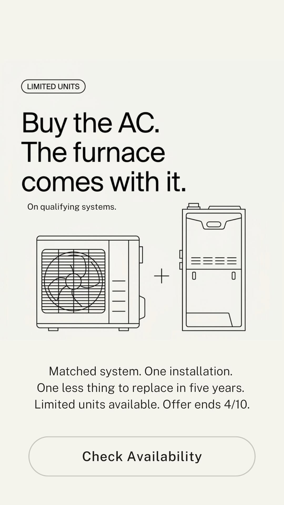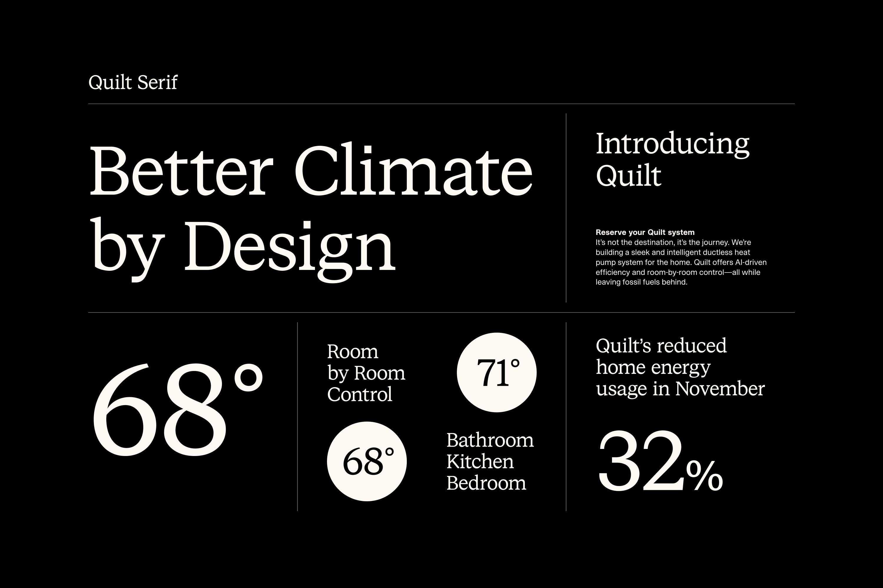 This display utilizes a clean, modern visual language, employing negative space and clear segmentation to present a product (HVAC) and lifestyle benefits. The design emphasizes simplicity, technological sophistication, and a comfortable, aspirational home environment.