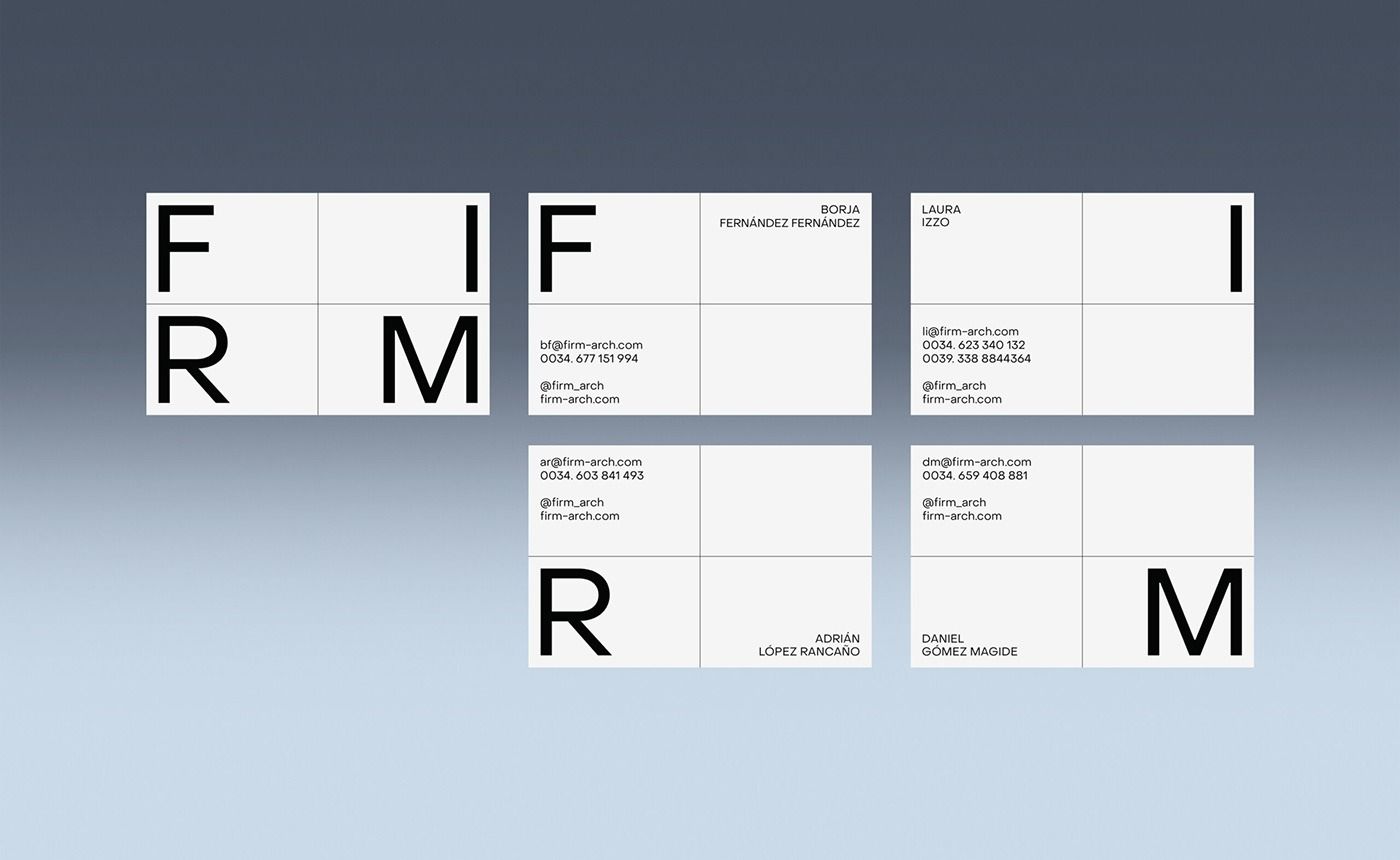 The image presents a minimalist and professional layout featuring dark and white cards, suggesting an identity or contact card set. The design relies heavily on negative space and clean typography to convey a sense of modern, corporate professionalism.