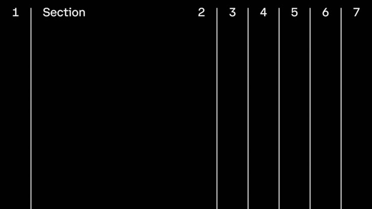 The image presents a stark, minimalist structural layout, likely a section divider or index, characterized by clean lines and high contrast. The design emphasizes clear segmentation and functional organization through simple numbering and vertical lines.