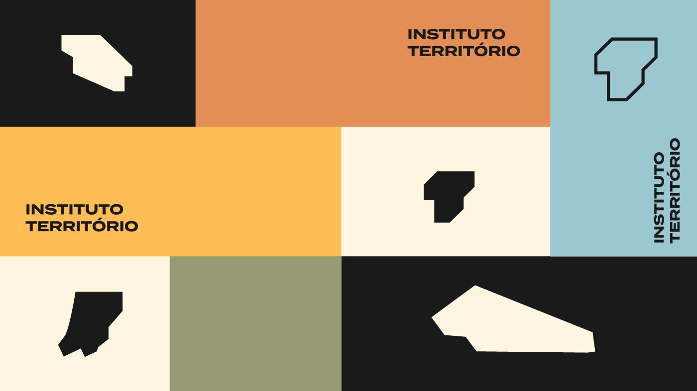 This image presents a clean, modular grid design utilizing muted, earthy tones contrasted with stark black and white. The visual language is minimalist and institutional, relying heavily on geometric shapes to denote different sections.