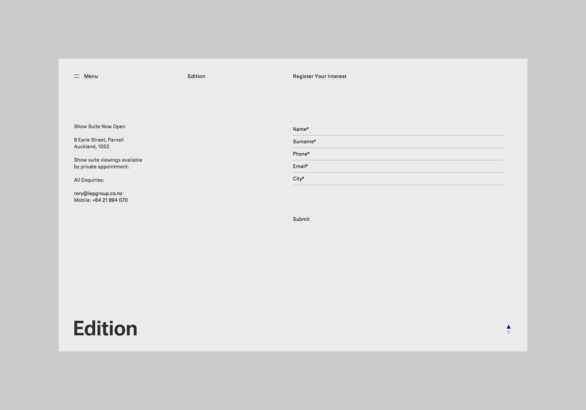 A minimalist, professional form or registration interface with clean typography and ample whitespace. The design employs a grid-based layout with subtle hierarchical elements, presenting information in a structured, accessible manner typical of contemporary web or print design.