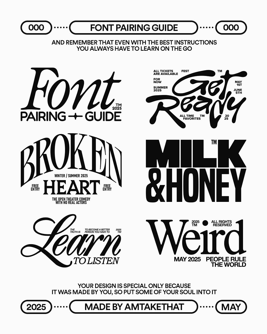 This image presents a minimalist, typographic guide or pairing list using a clean, classic serif font paired with simple sans-serif elements. The design relies heavily on negative space and precise alignment to convey a sense of established authority and straightforward instruction.