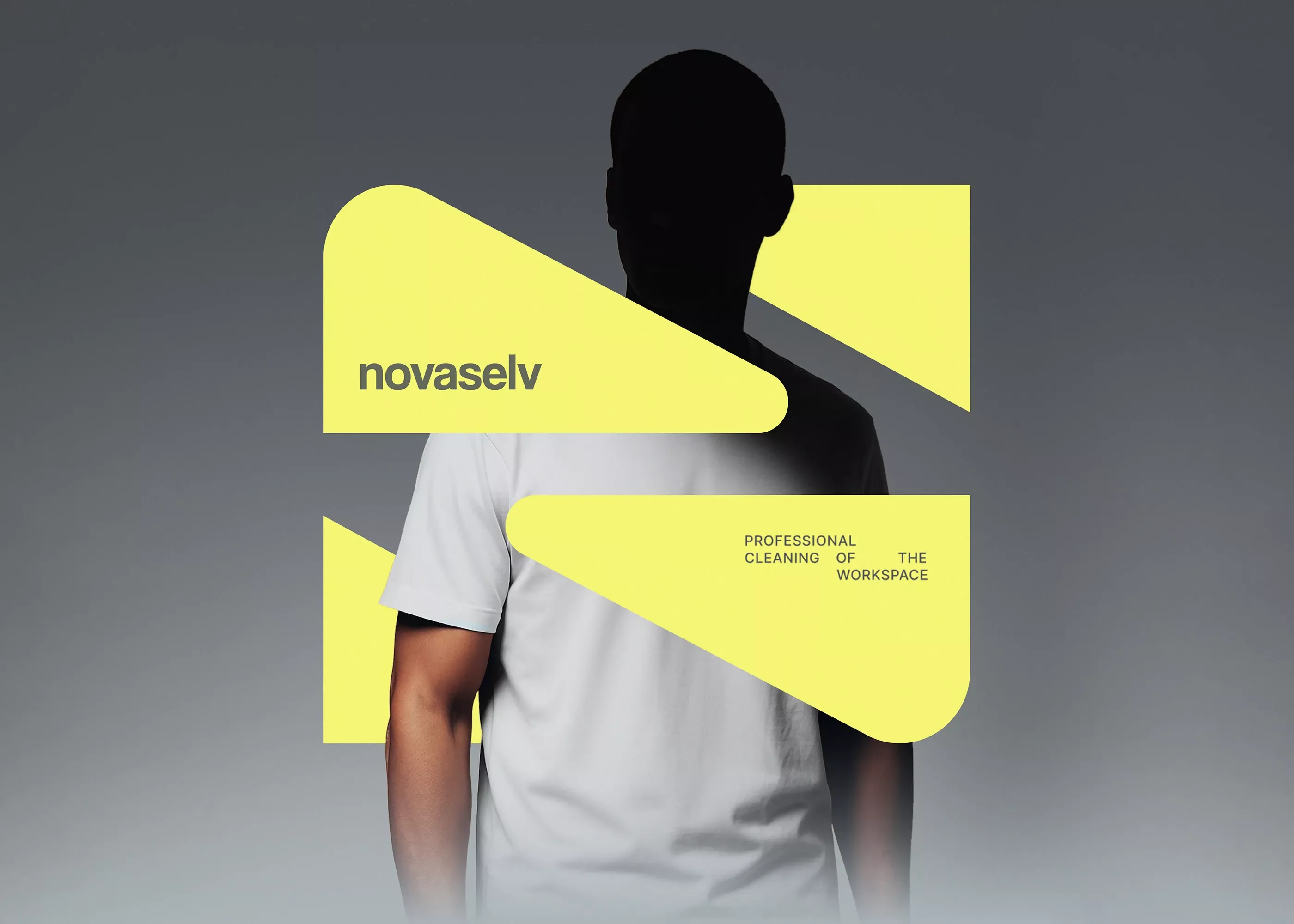 The image features a minimalist and modern design utilizing bold geometric shapes and high contrast. The visual language is clean, professional, and relies heavily on negative space to draw attention to the brand name and service offering.