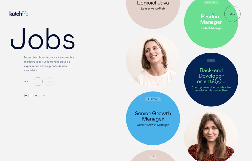 This interface features a clean, modern design utilizing geometric circular elements to categorize job roles and information. The visual language is professional, trustworthy, and structured, employing ample white space to ensure readability and clear hierarchy.