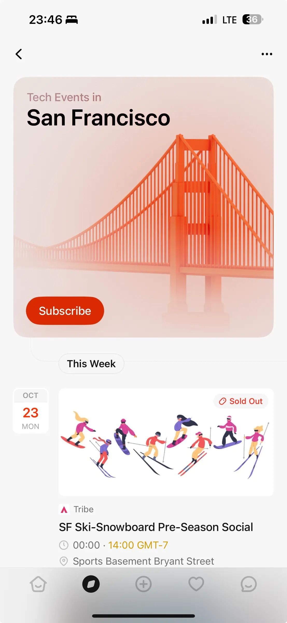 The design features a clean, modern interface dominated by a soft, warm color palette and a prominent, large photographic element. The layout is minimalist, prioritizing readability and visual hierarchy for event promotion.