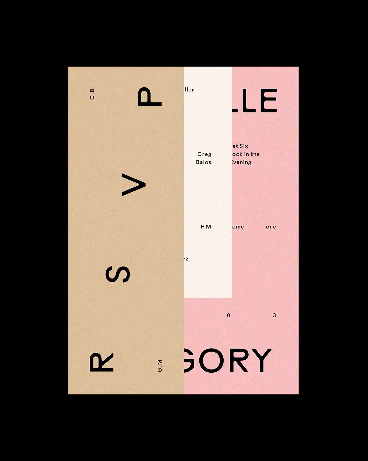 This design showcases a stark, modern aesthetic relying on high contrast and simple geometric forms. The layout uses vertical stacking and modular blocks of color to organize bold typographic elements, creating a sense of disciplined minimalism. The visual language is sophisticated and focuses on negative space to emphasize the large, capitalized letters.