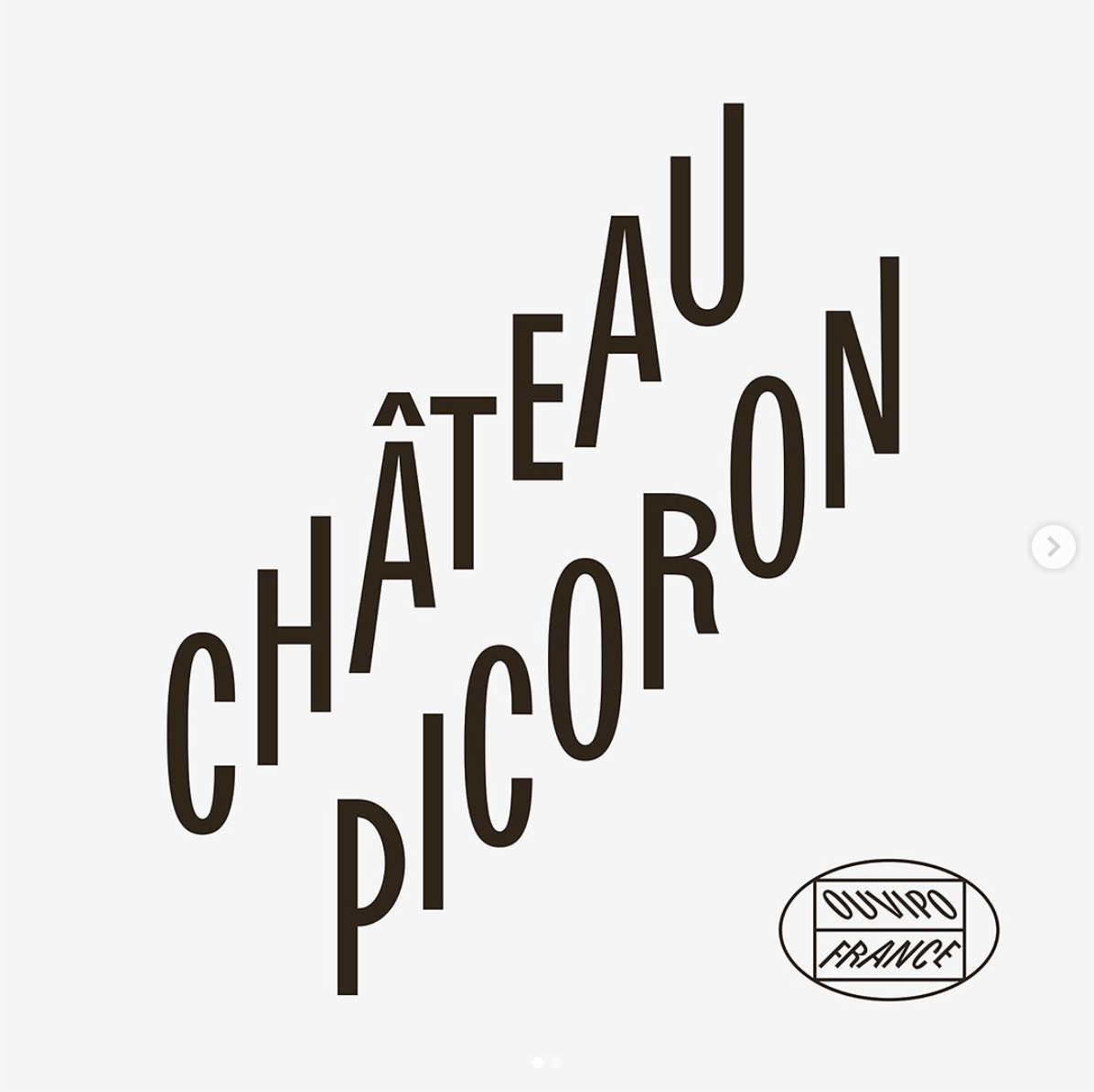 This is a minimalist typographic design featuring the name 'CHÂTEAU PICORON' rendered in a clean, modern sans-serif typeface. The design relies heavily on negative space and strong vertical alignment to create a sophisticated, elegant, and contemporary aesthetic.