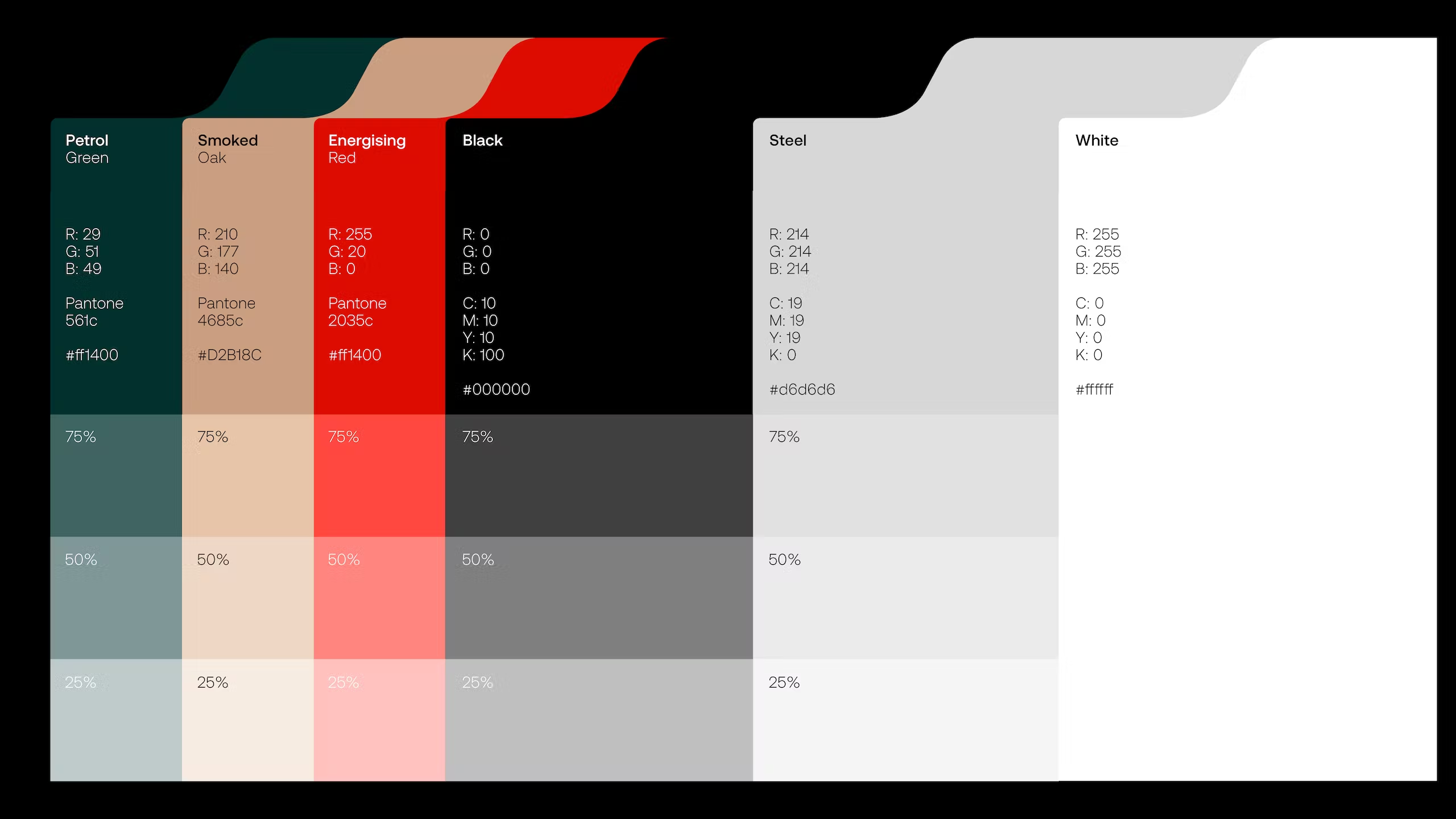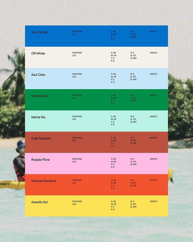 This design utilizes a stark, minimalist aesthetic to present color samples in an organized, grid-based format. The visual language is highly functional and clean, emphasizing clarity and professional presentation of product options. The layout successfully uses negative space to draw attention to the distinct color blocks.