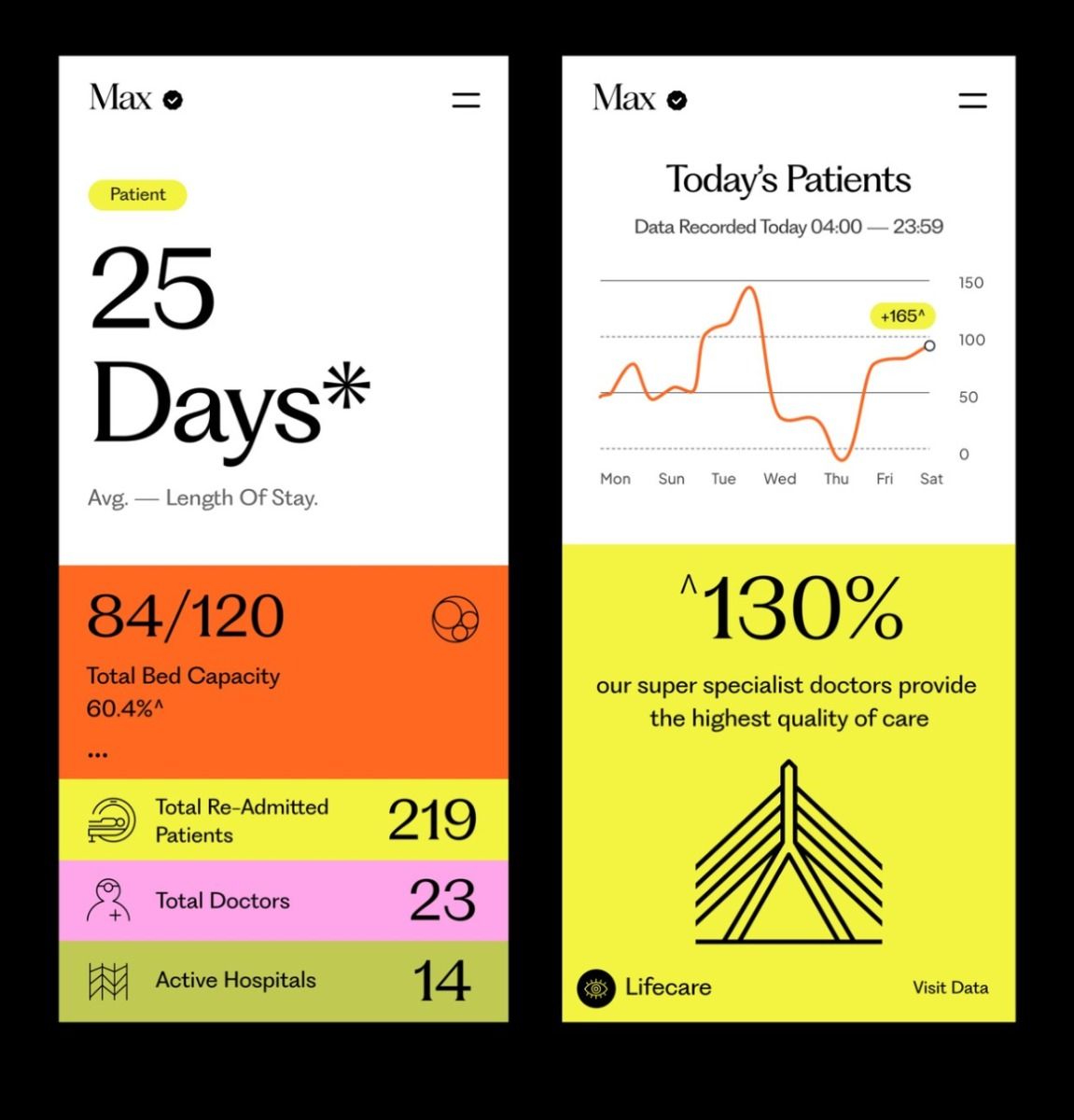 The design is clean, data-driven, and highly structured, utilizing a minimalist approach with strong use of color blocking to present key metrics. The visual language is professional and modern, focusing on clear information hierarchy through large numbers and simple charts.