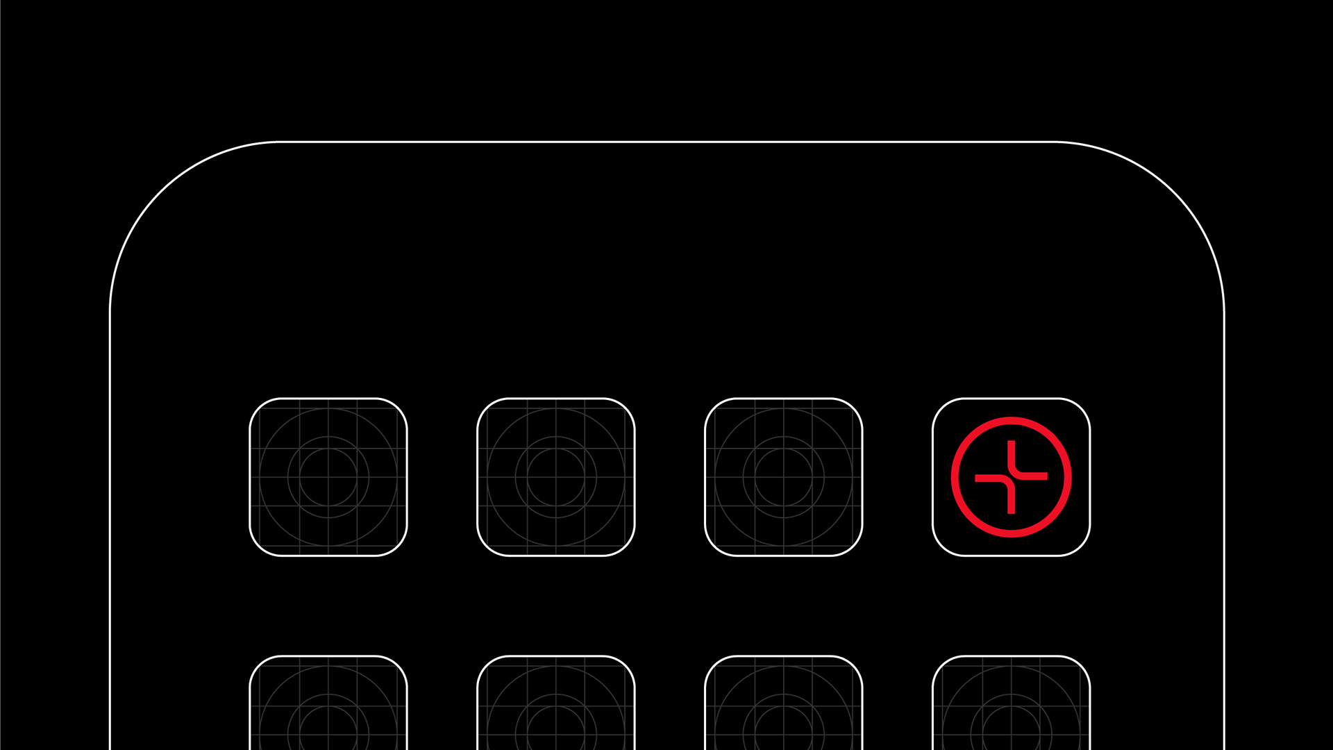 This design utilizes a stark, minimalist approach with clean geometric shapes arranged in a strict grid layout. The visual language emphasizes precision and function, employing subtle outlines to define components against a dark background.