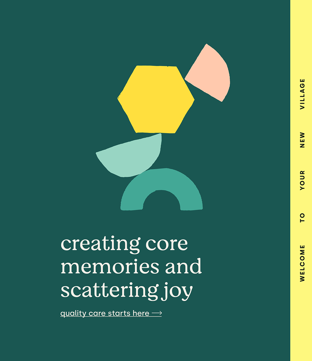 The design features a minimalist, organic abstract mark composed of geometric shapes in muted, earthy tones against a deep teal background. The visual language is clean and modern, suggesting care, warmth, and handcrafted quality.