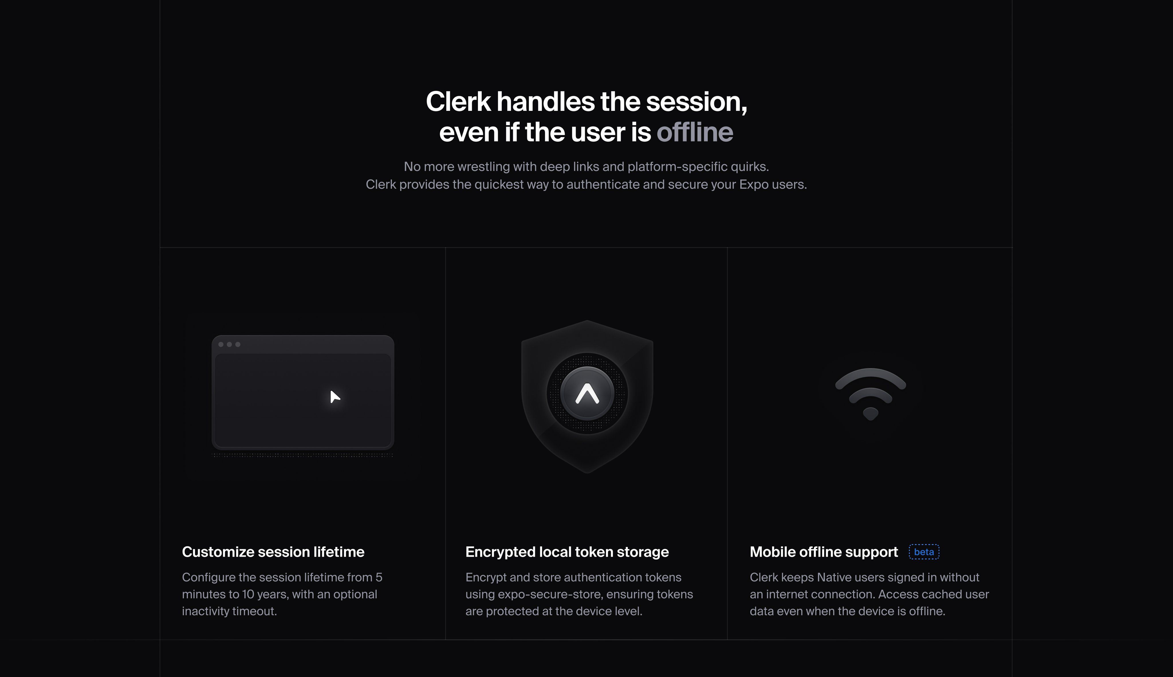 The design utilizes a clean, dark theme with high contrast typography to present technical features clearly. The visual language is highly functional and modern, focusing on security and reliability through minimalist layout and clear iconography.