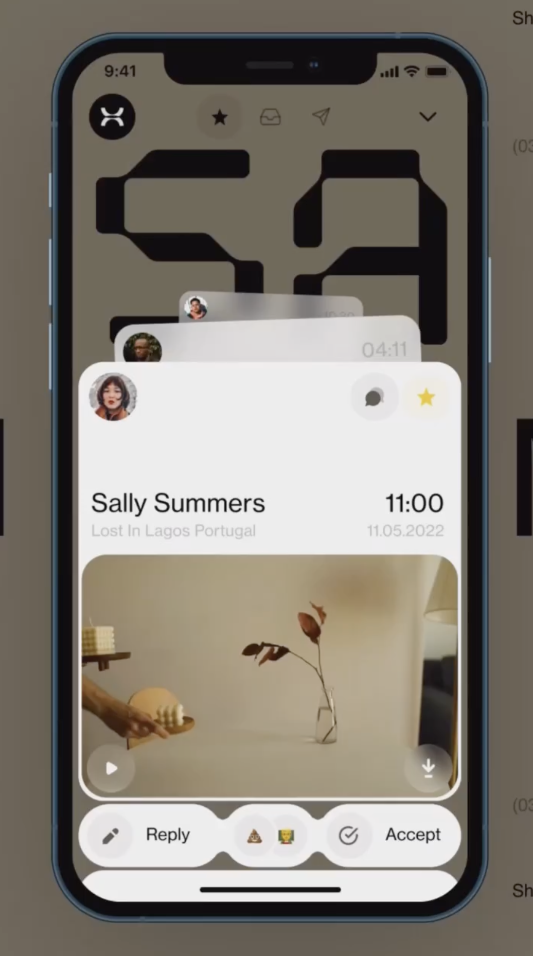 The image displays a clean, modern mobile application interface characterized by high contrast and minimalist design principles. It uses a dark mode aesthetic with subtle gradients and clear spatial hierarchy to present a personal message or profile.