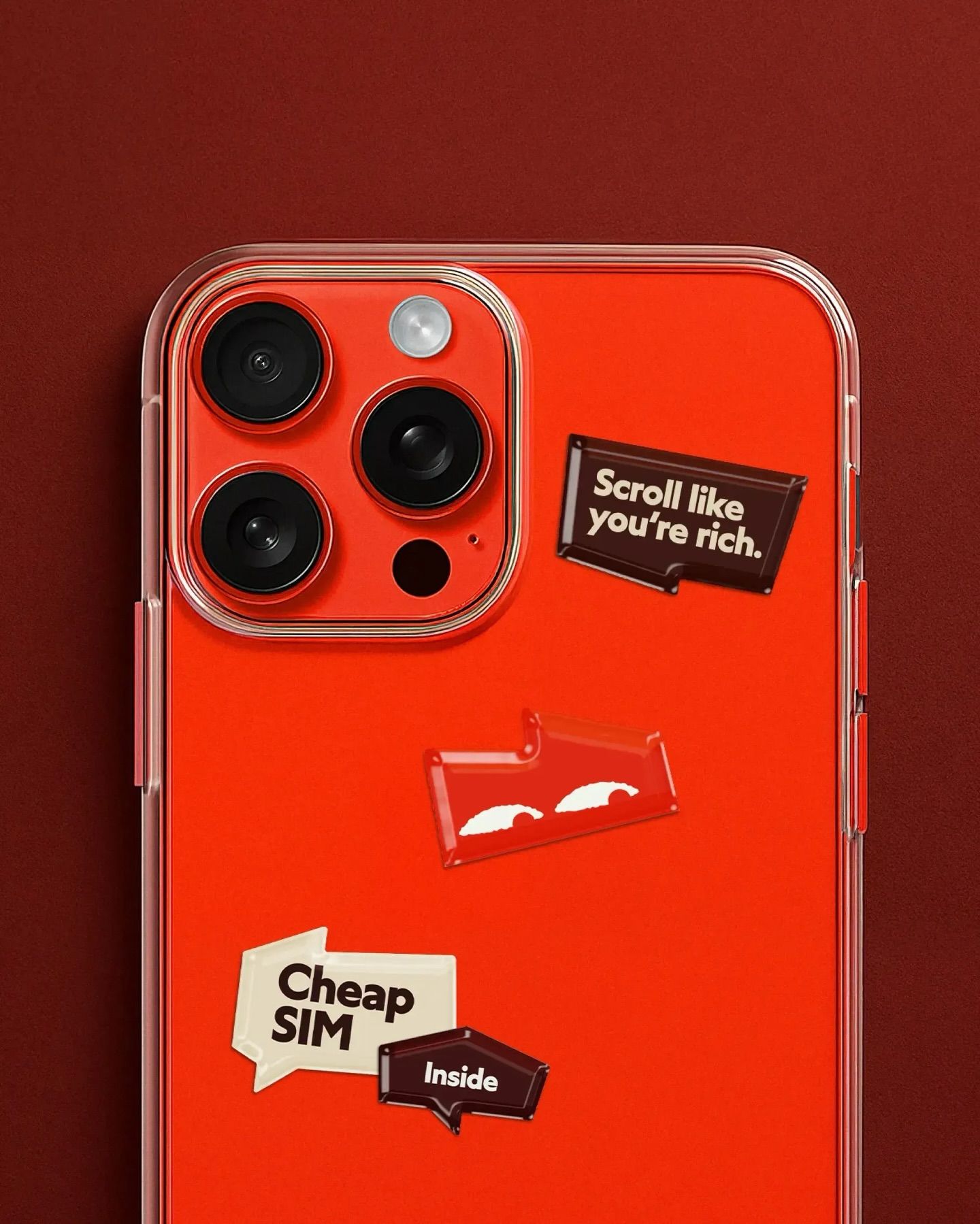This image is a high-contrast, graphic mock-up of a smartphone, utilizing a vibrant orange background to highlight various overlaid informational elements. The design employs bold typography and distinct shapes, creating an immediate, attention-grabbing visual that suggests a focus on mobile features or marketing claims.