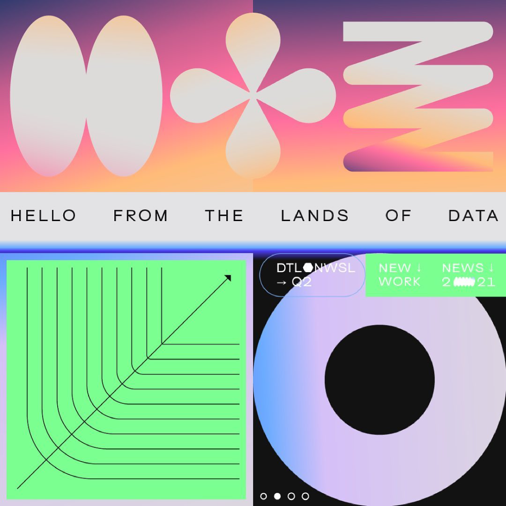 This design showcases a clean, modern aesthetic utilizing strong vertical color blocking and photographic elements. The visual language is minimalist yet bold, relying on sharp geometric divisions to separate content and branding. It successfully balances photographic imagery with clear, legible typography for a contemporary feel.