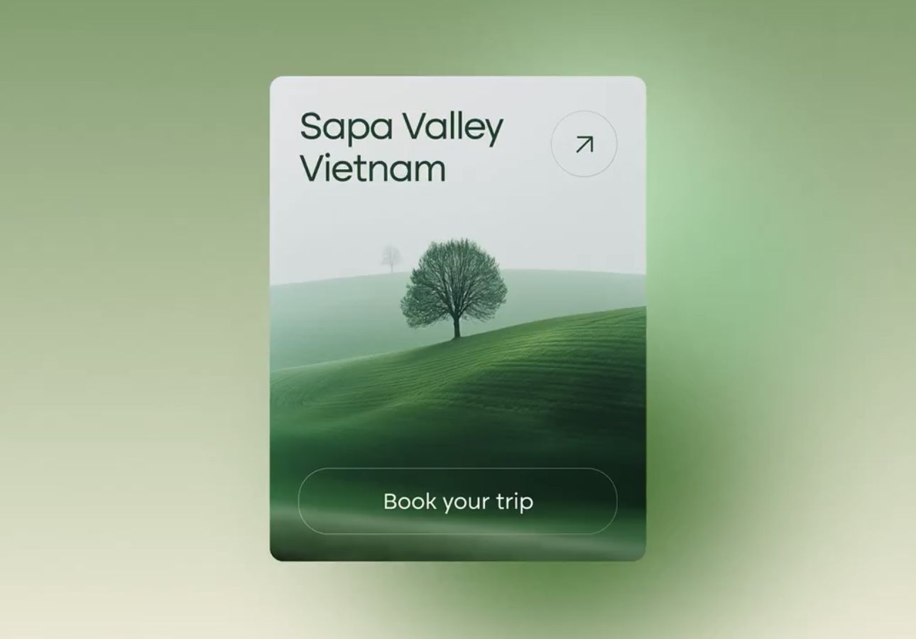 The design is clean, minimalist, and nature-focused, utilizing soft gradients of green and muted white to evoke a sense of tranquility and natural beauty. The composition is simple, featuring a landscape silhouette against a soft background, guiding the user toward a clear call to action.