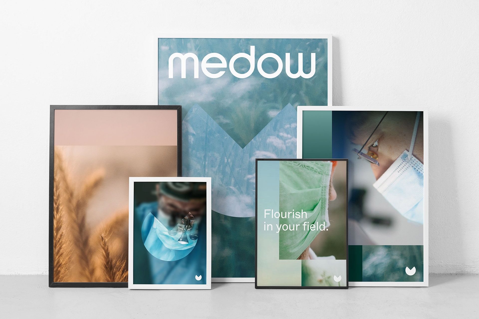 This is a clean, modern visual display featuring several framed pieces of artwork or photography, likely for branding or editorial content. The design uses a muted, natural color palette with strong negative space and a minimalist aesthetic to convey a sense of organic growth and calm.