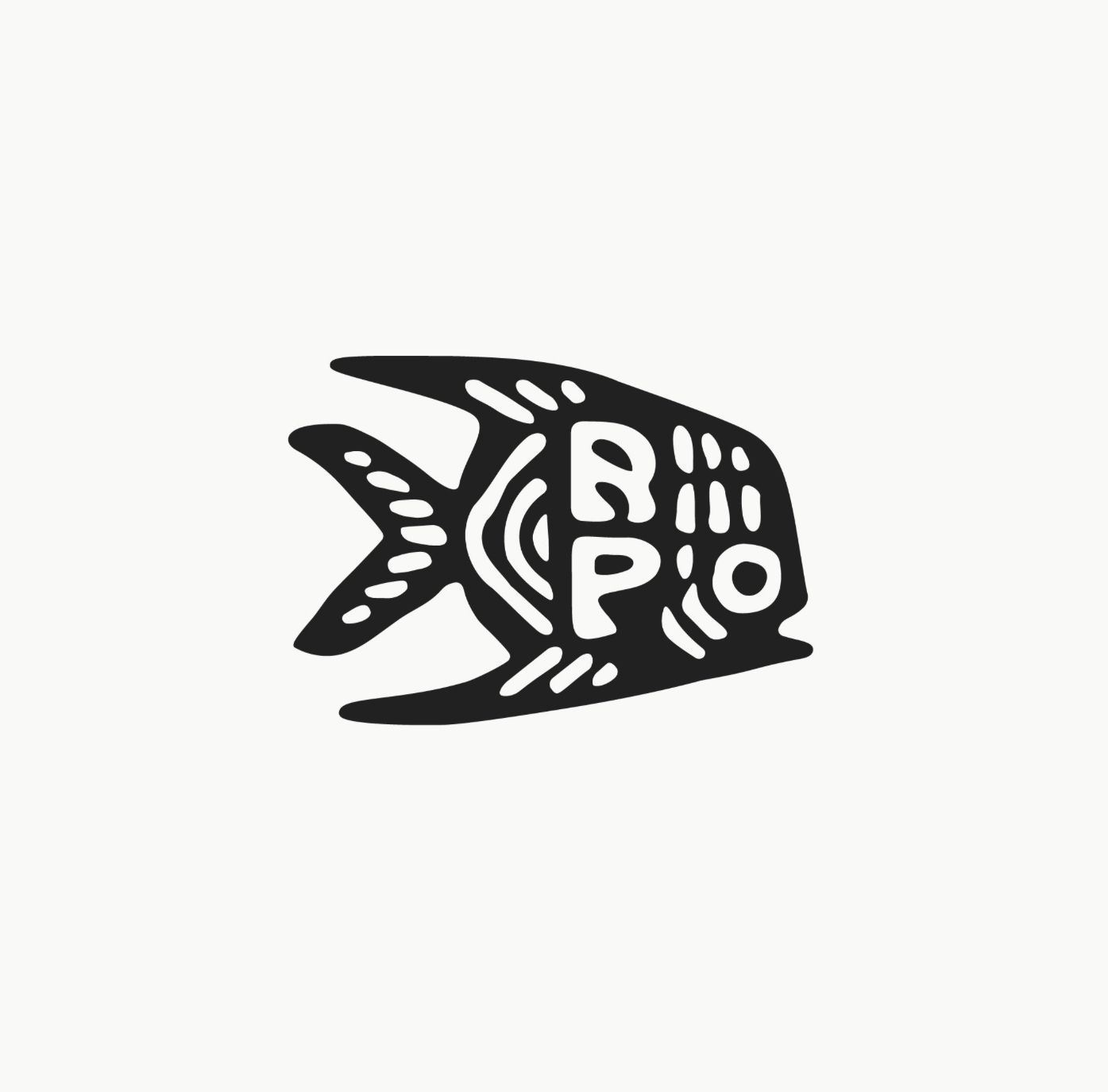 This is a minimalist, silhouette-style graphic featuring an abstract shape resembling a fish or stylized organic form. The design relies on negative space and solid black shapes to convey movement and a sense of natural, perhaps aquatic, identity.