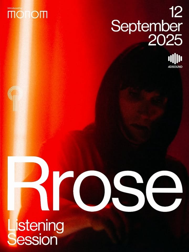 A modern event poster featuring a striking gradient from red to orange with a vertical light beam effect. The design combines contemporary typography with a moody silhouetted portrait, creating an energetic yet intimate atmosphere for a listening session event.