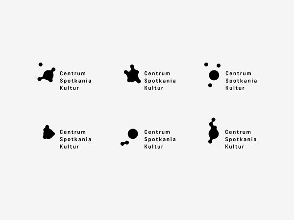 A minimalist institutional identity system featuring abstract black geometric shapes paired with clean sans-serif typography on a light gray background. The design demonstrates a modular, systematic approach to branding with repeated logo variations that maintain consistent visual language across applications.