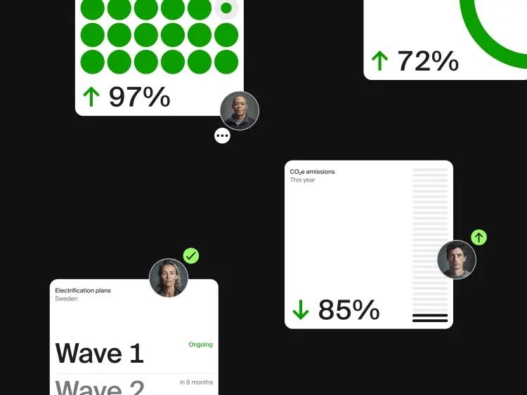 The image presents a dashboard or infographic style layout using a clean, minimalist aesthetic with a dark background and bright green accents. It uses clear percentage indicators and simple icons to convey data effectively, suggesting a focus on progress tracking or performance metrics.