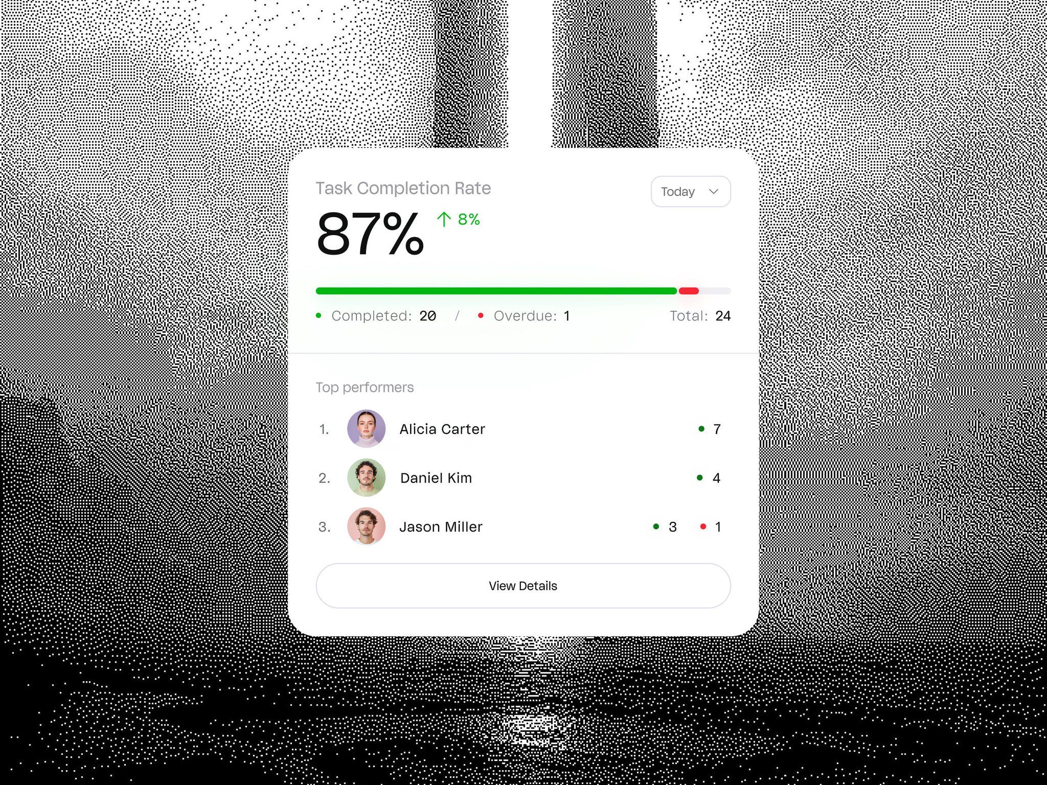 The image displays a clean, modern mobile application interface focused on presenting positive performance statistics. The design utilizes ample white space and subtle use of color to create a professional and encouraging user experience.