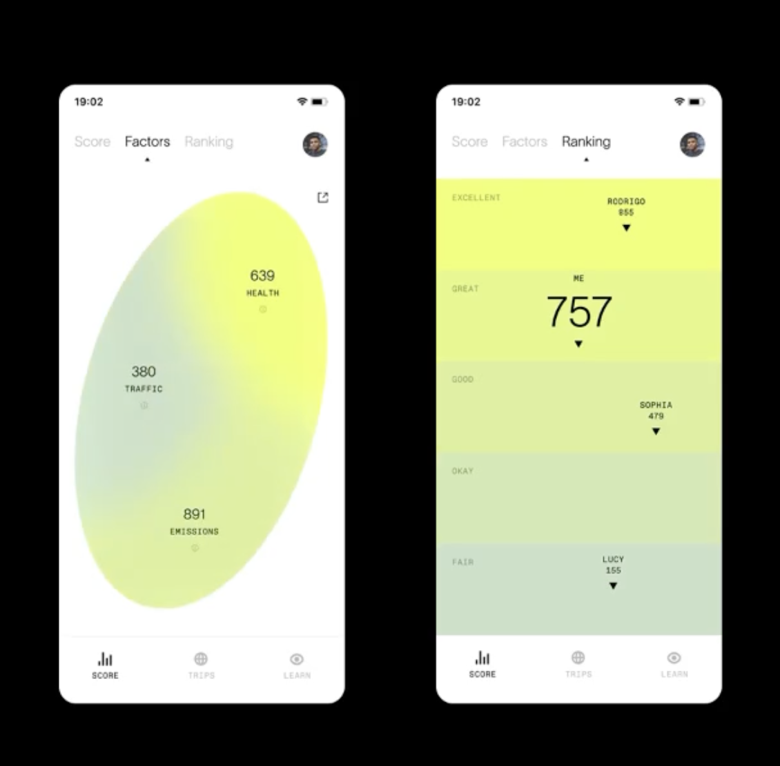 The interface presents a clean, modern, and data-driven dashboard design utilizing a light, pastel color palette. The layout is organized vertically with distinct sections for scores and rankings, emphasizing clarity and easy comparison of metrics.