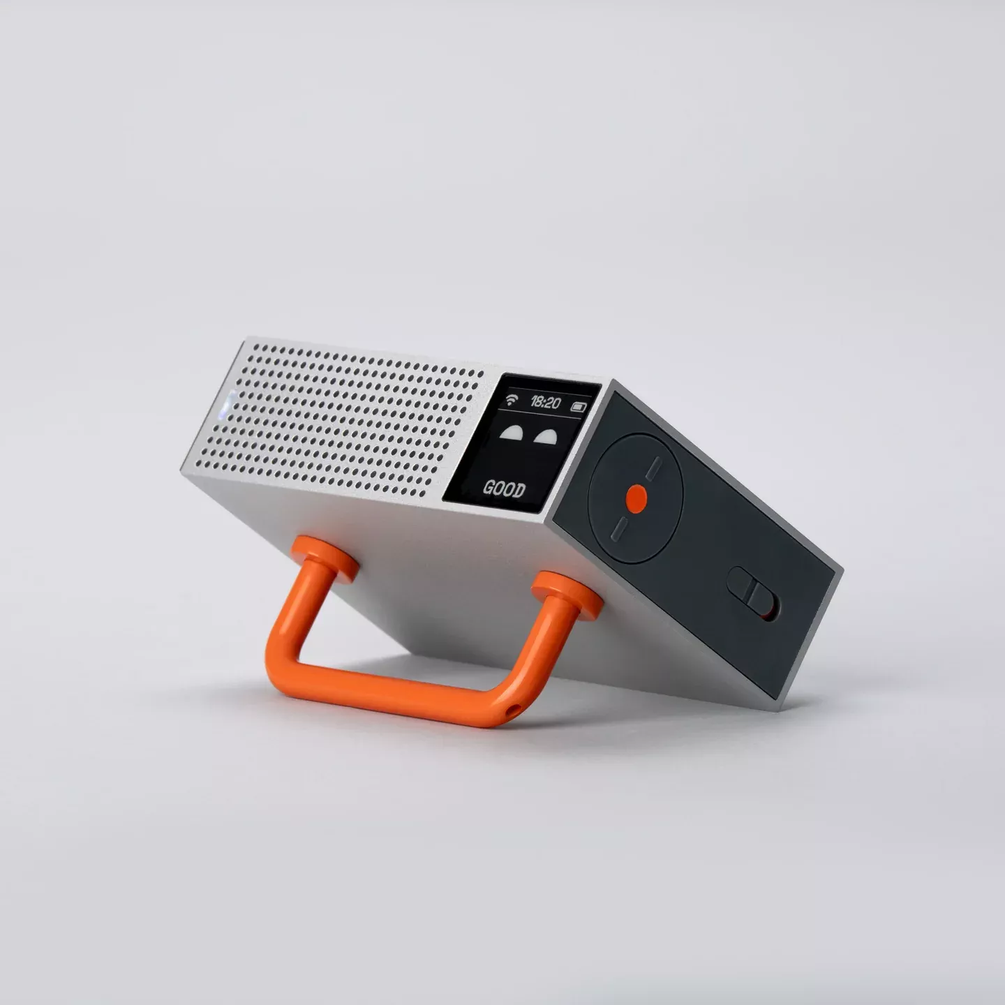 This device exhibits a clean, functional design blending industrial precision with tactile elements. The visual language emphasizes clear hierarchy through contrasting textures and a limited, high-contrast color scheme, suggesting reliability and modern utility.