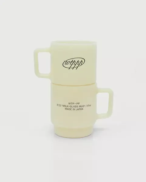 This image features a simple, translucent, pale yellow or cream-colored plastic mug with a handle. The design is minimalist and functional, emphasizing clean lines and subtle branding through simple, handwritten-style text.