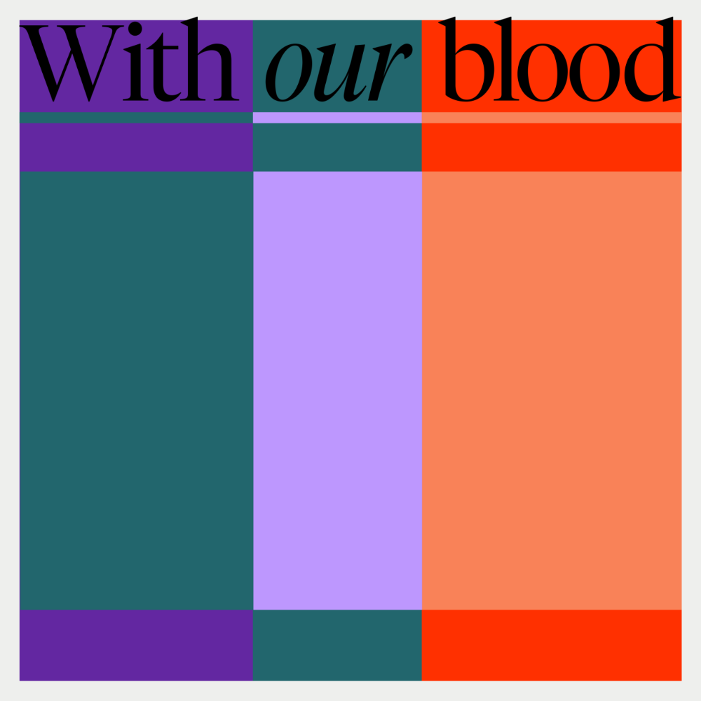 This design uses a bold, blocky color field composition with strong horizontal and vertical divisions. The juxtaposition of deep jewel tones and bright oranges creates a dynamic yet structured visual impact.
