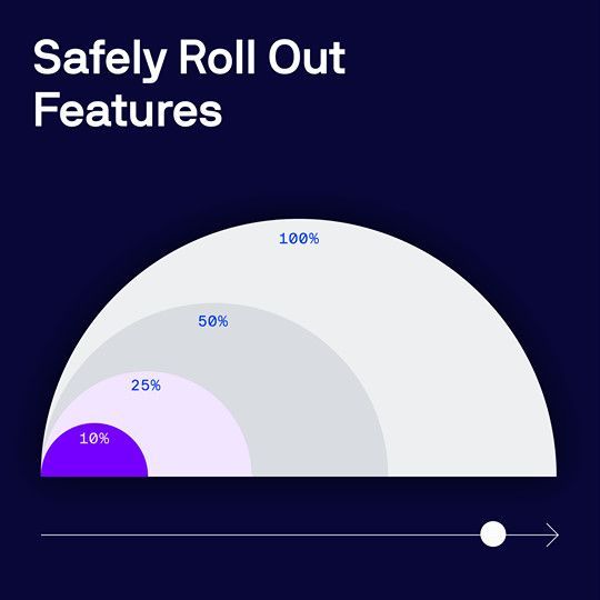 The image presents a clean, minimalist data visualization using a radial or semi-circular chart to illustrate feature rollout percentages. The design relies on simple geometric shapes and a limited color palette to convey progress clearly and professionally.