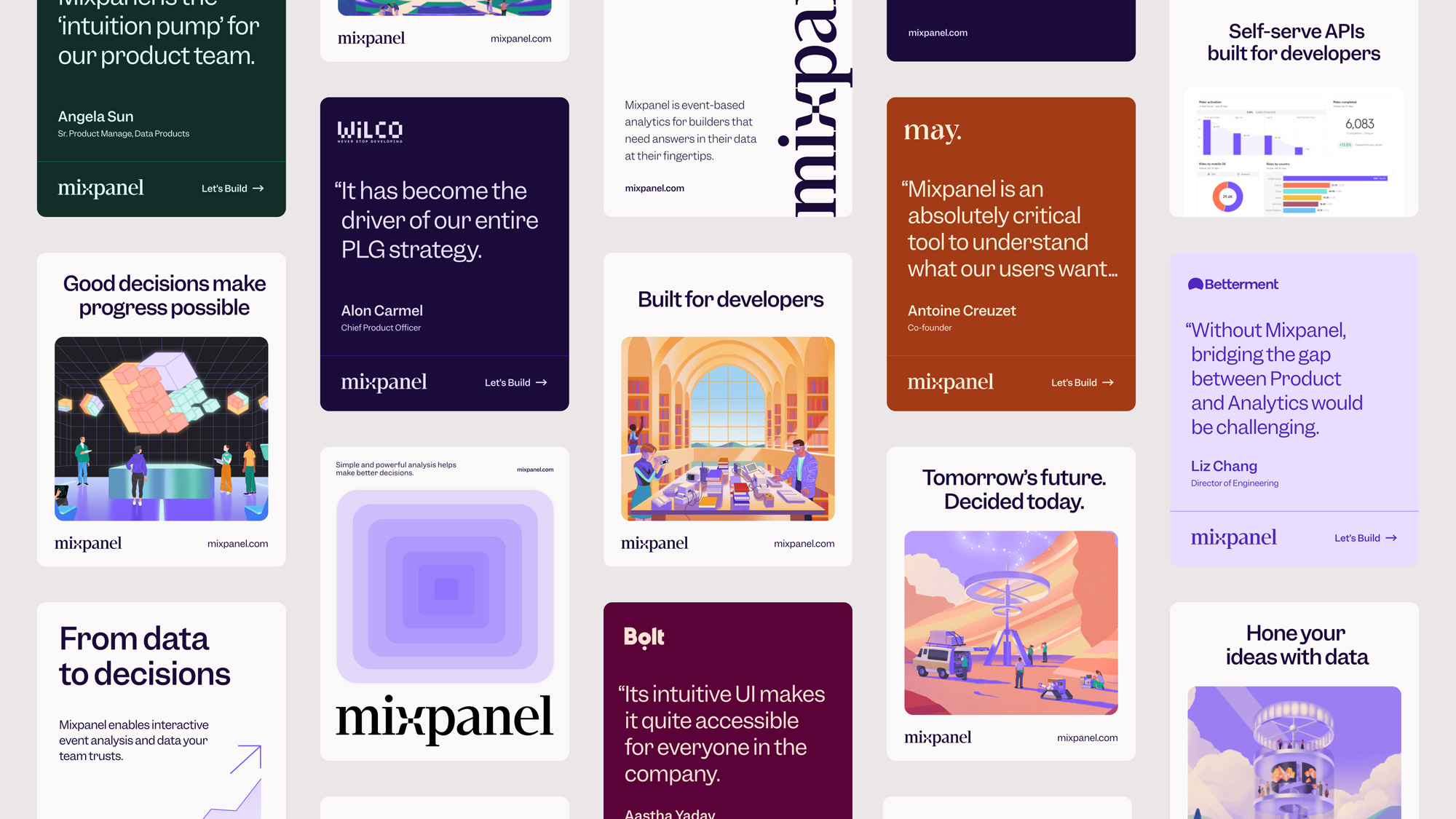 This design utilizes a clean, modern flat illustration style combined with distinct color blocks to present complex product features. The visual language is highly organized, using card-based layouts and vibrant accents to make data insights accessible and engaging.