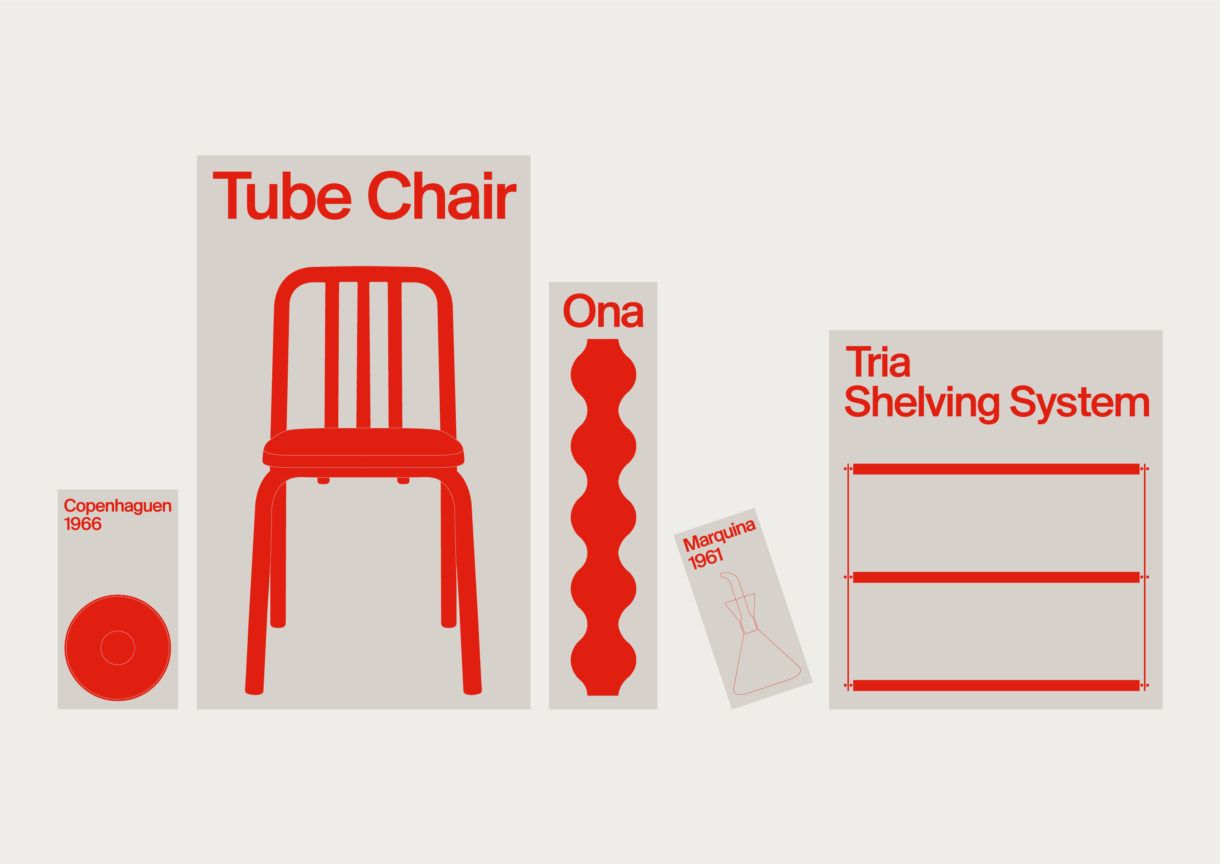 This image presents a clean, schematic visual language used for product or design concept presentation. The style relies heavily on simple line drawings and solid shapes against a neutral background to emphasize form and structure. The overall feel is precise, academic, and highly functional.