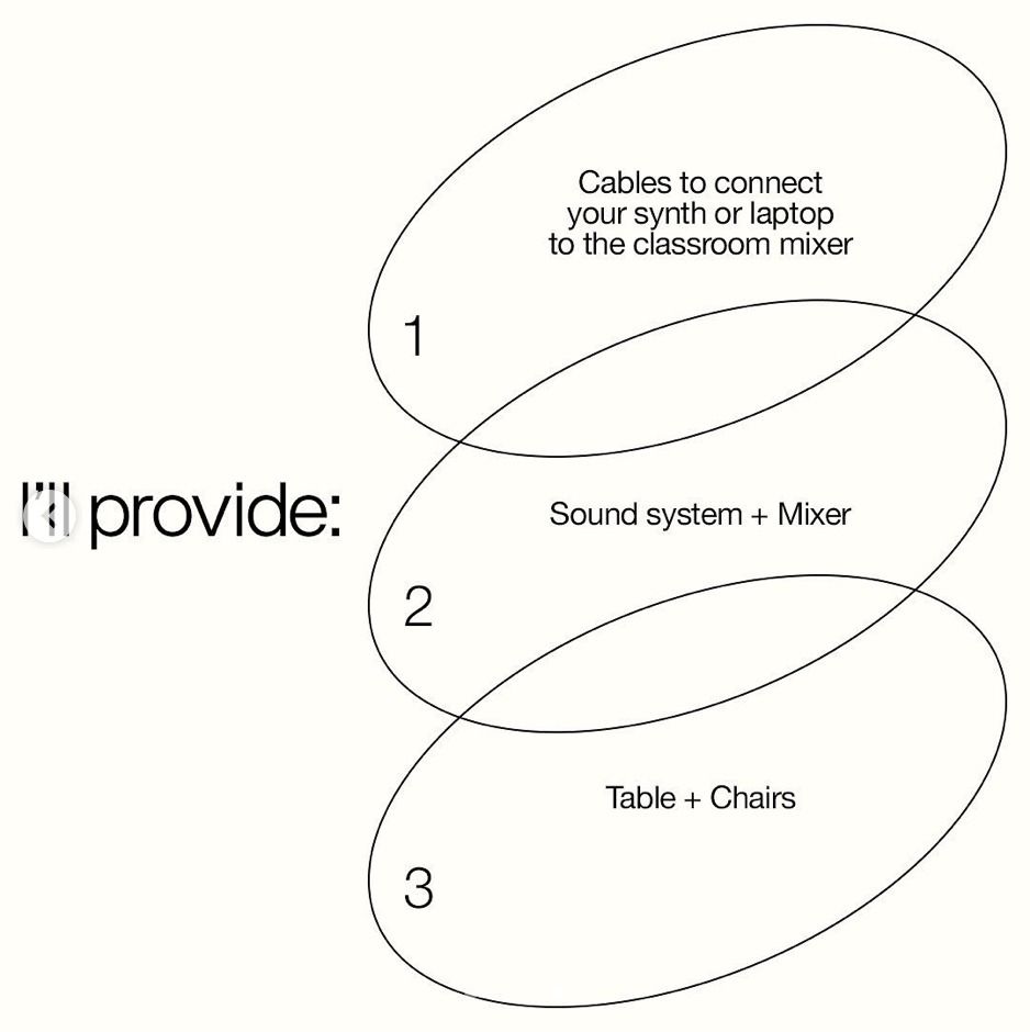 This is a schematic diagram utilizing overlapping ellipses to illustrate relationships or inclusions between three distinct components. The visual language is clean and functional, relying on simple lines and clear labeling to convey a concept or setup. It functions effectively as an instructional graphic or a conceptual model.